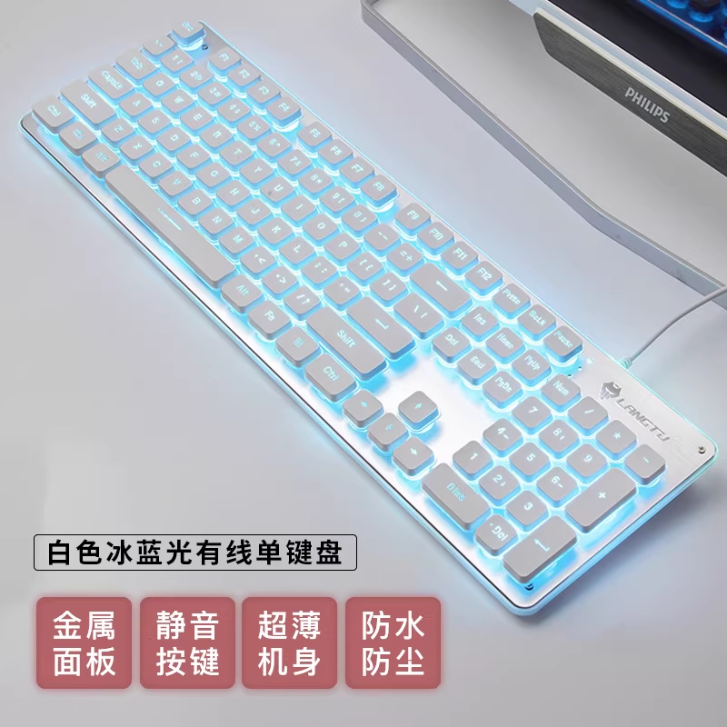 白色键盘机械手感女生笔记本有无线静音办公台式电脑鼠标套装